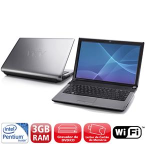 Esse é o notebook CCE XBP-332, um notebooks antigo ainda disponível no mercado, equipado com o processador Intel® Pentium® T3400 de 2.16 GHz de velocidade, com dois núcleos e capacidade para até duas tarefas simultâneas, um processador para o uso cotidiano, com 3 GB de memória ram DDR 3, que é a memória mais atual e rápida do mercado, perfeita para trabalhar com várias janelas simultâneamente, com HD de 320 GB para armazenar todos os seus dados, como fotos, vídeos, músicas e muito mais, tudo isso em uma tela LED de 14" polegadas, que economiza até 35% de cores que o LCD e possui cores vivas também, perfeita para você trabalhar ou se divertir com ele.