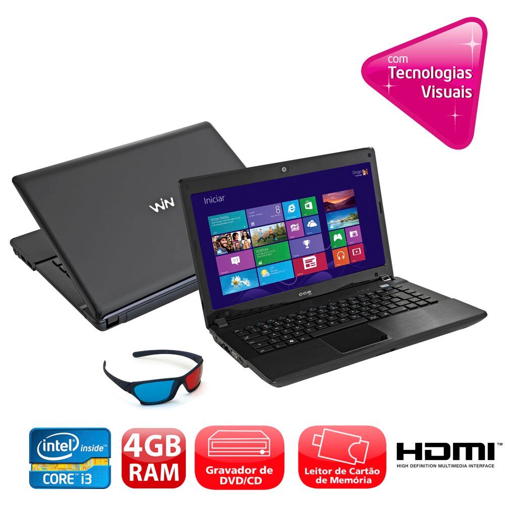 Esse é o notebook CCE X325, um dos notebooks mais procurados do mercado, equipado com o processador Intel® Core™ i3-2328M de 2.20 GHz de velocidade, com dois núcleos de processamento e capacidade para até quatro tarefas simultâneas, excelente para usuários que procuram desempenho, com 2 GB de memória ram DDR3, que é a memória mais atual e rápida do mercado, perfeita para navegar na Internet e trabalhar com várias janelas simultâneamente, HD de 500 GB para armazenar todos os seus dados, como fotos, vídeos, músicas e muito mais, tudo isso em uma tela LED de 14" polegadas, que economiza até 35% de cores que o LCD e possui cores vivas também, perfeita para você trabalhar ou se divertir com ele.